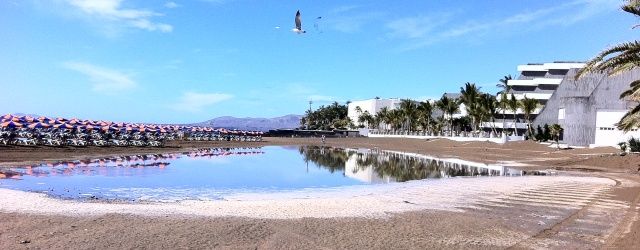 Playa Grande, in Puerto del Carmen, has a large puddle of water due to the "four drops" that have fallen this Friday in Lanzarote. A merchant in the area has transferred this complaint to La Voz and has stated that "this cannot be allowed anymore." "It has practically not rained," he said.