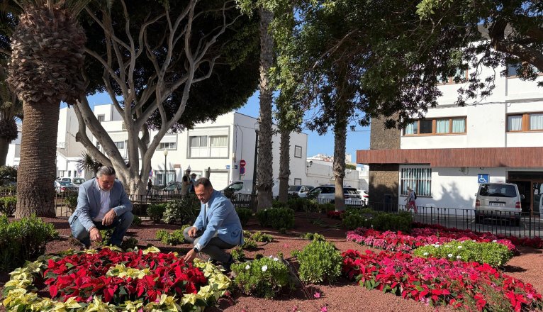 The Arrecife City Council, through the Department of Parks and Gardens, is beautifying the gardens, parks, and flowerbeds in all the city's neighborhoods during these weeks of December with 10,000 poinsettia plants, reinforcing the vegetation in Arrecife's public spaces