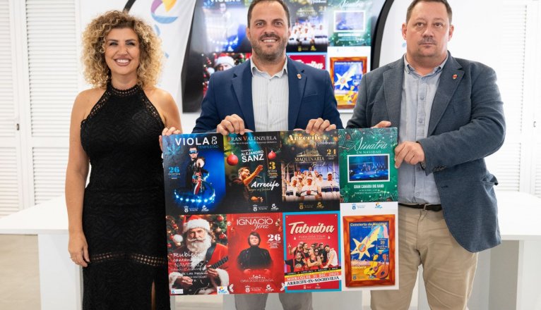 In this press meeting, held after the presentation of the San Silvestre Ciudad de Arrecife, Mayor Yonathan de León, Councilor Eli Merino, and Councilor Óscar López presented the posters for the musical performances by Los Coquillos, Tabaiba, Maquinaria Band, Tributo a Alejandro Sanz, homenaje a Raphael, and Navidad Sinatra with the Gran Canaria Big Band, which will contribute to the family fun for residents of Lanzarote, as well as the thousands of visitors expected in the capital over the next two weeks.