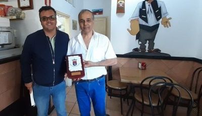 Councilman Armando Santana attended this Thursday to directly present a plaque to Juan José Gutiérrez Hernández, owner of the Tin Tan bar, in recognition of this hotel establishment in the city for its 52 years of continuous activity in the hospitality industry in Lanzarote.