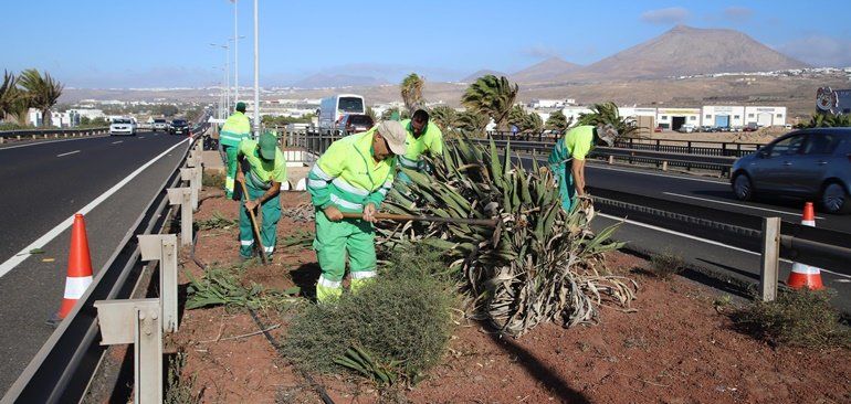 During these weeks, operators belonging to the UTE Márgenes Lanzarote, which provides service to the Cabildo, are working on the cleaning and tidying of the median of the LZ-2 road, specifically between the César Manrique Airport and Arrecife.