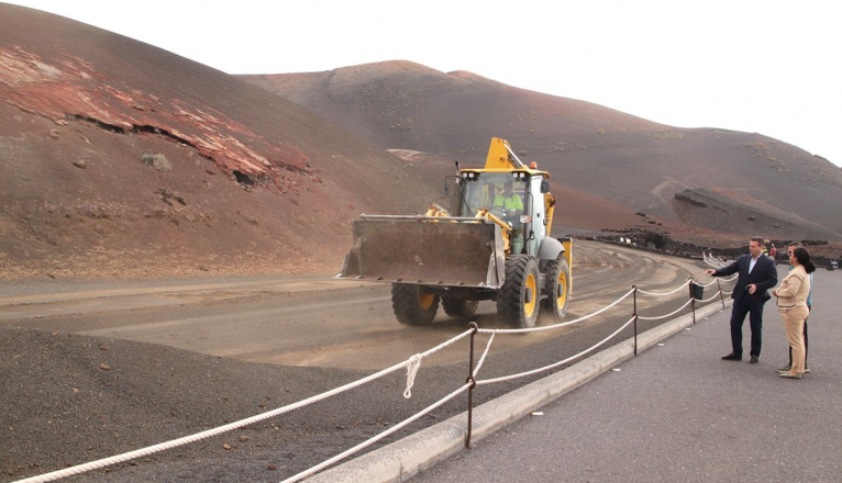 The Yaiza Town Council carried out work this Wednesday to condition the camel resting area in the Timanfaya National Park, basically the complete replacement of the volcanic gravel and cleaning of the area. The action had the approval of the National Park, whose staff followed the execution of the commission together with the mayor of Yaiza, Óscar Noda, and the councilor of the Camel Sector, Águeda Cedrés.