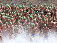 There I am, with my binoculars watching the swimmers. . .buoy 1. . .They are doing well, buoy 2, they are still swimming almost all at the same pace,. . . buoy 3. . . the white foam of the swimmers is approaching us progressively . . . buoy 4. . . good pace. "Excuse me, where are they going?", a girl without binoculars asks me. "To the left of the buoys, that's where they have to go so that the current doesn't drag them", I tell her.