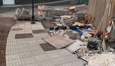 A resident of the Las Coloradas urbanization, in Playa Blanca, reports the situation that has been experienced for more than three months in Las Acacias street, where a construction site maintains construction material invading the sidewalk and preventing the passage of pedestrians.