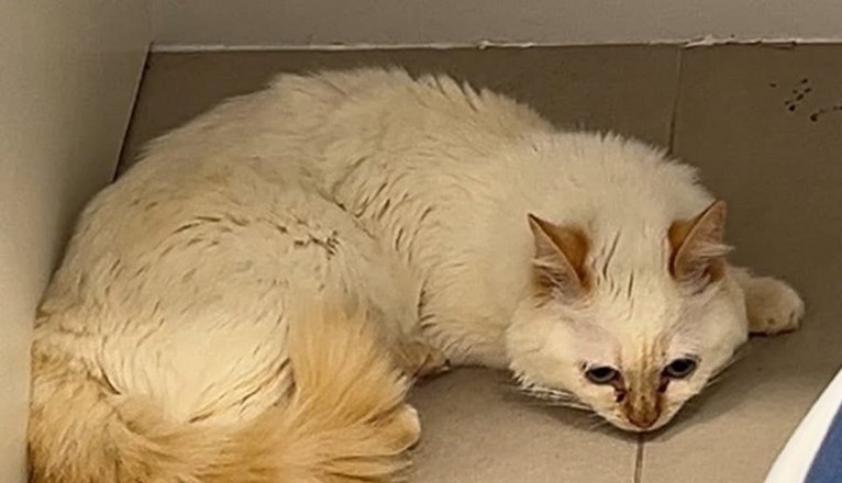 The animal is white and its owner is asking for maximum dissemination so that it returns home.
