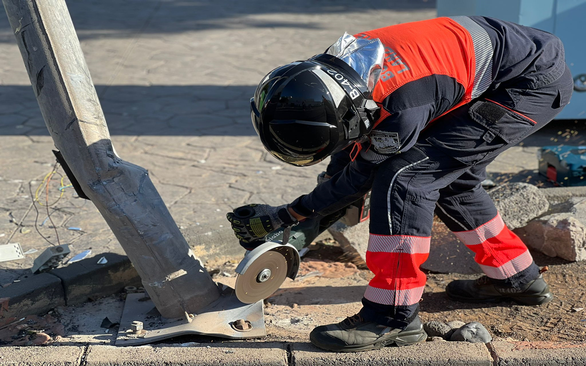El incidente hizo que el coche quedara apoyado sobre uno de sus laterales y fue necesaria la intervención del Consorcio de Seguridad y Emergencias para retirar la farola dañada