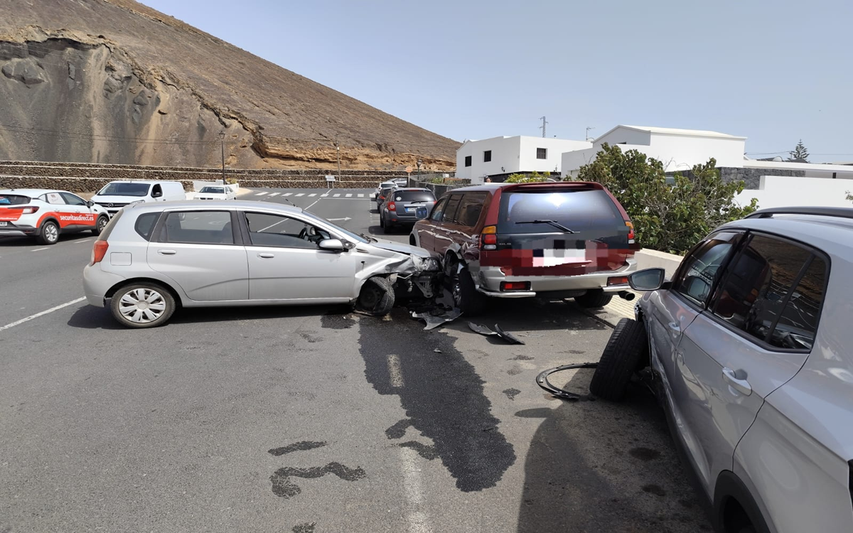 A causa del impacto, uno de los vehículos quedó sobre la acera y otro quedó atravesado en la carretera