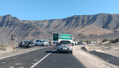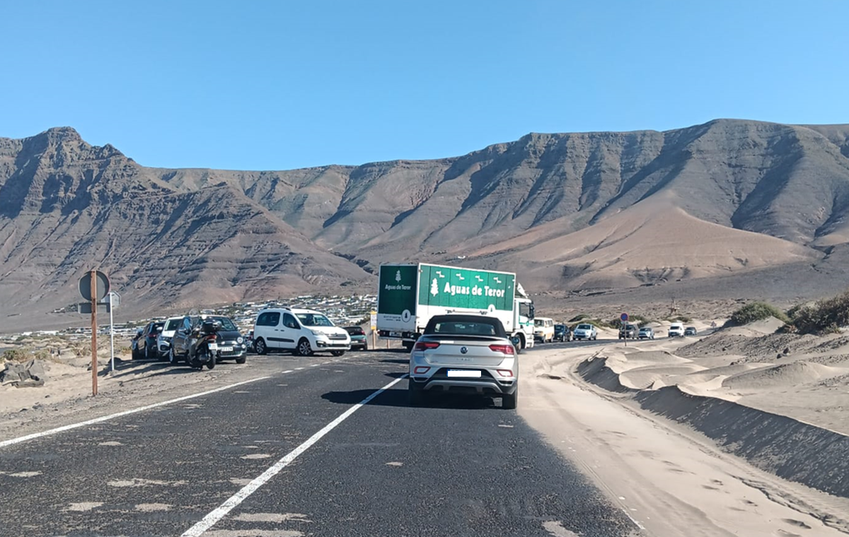 Un lector se ha puesto en contacto con La Voz para denunciar el colapso de la carretera del molino de Famara debido al jable que todavía obstaculiza el acceso a los bungalows. Debido a esto, todos los coches tienen que acceder por el mismo lugar, lo que provoca largas colas.