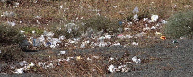 Envoltorios, bolsas de plástico y envases se amontonan en los solares de la zona industrial de Argana. Ésta es la denuncia que un ciudadano ha querido hacer pública a través de La Voz de Lanzarote, pues considera que es "una vergüenza" el estado en que se encuentra esa parte de la ciudad.