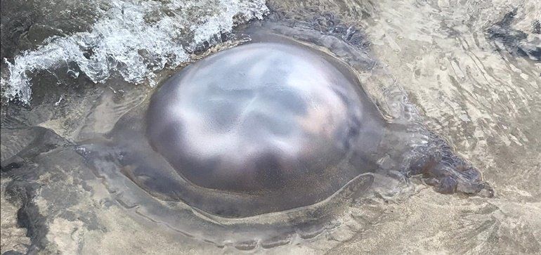 Según Patricio Morales, el hombre que la encontró y que se vio sorprendido por sus dimensiones, la medusa podía medir "hasta 1,40 metros de diámetro". Y es que, este ciudadano explica que además de lo que se aprecia en la imagen, había una gran parte de la aguaviva bajo la arena.