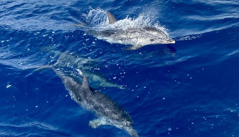 El avistamiento se produjo en la costa de Playa Quemada y Puerto Calero a unas 4 millas. Los cetáceos navegaban al lado de las embarcaciones, a muy poca distancia de lanchas y del catamarán.