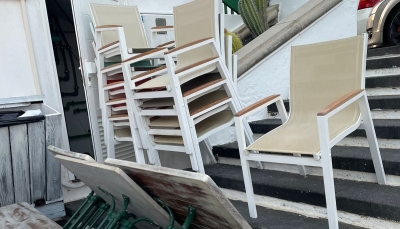 Un ciudadano se ha puesto en contacto con el periódico para criticar la invasión de los espacios públicos por las sillas y mesas de un restaurante en Playa Blanca.