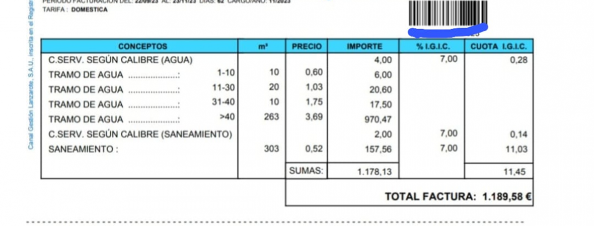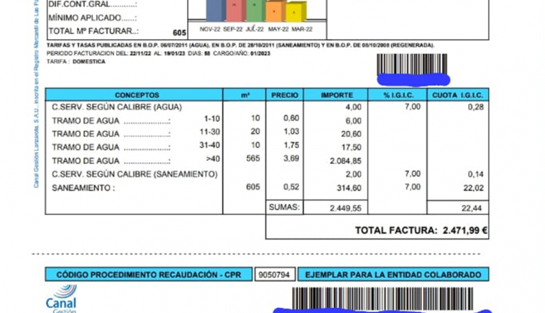 Una lectora se ha puesto en contacto con La Voz para denunciar que la empresa de aguas, Canal Gestión, le obliga a pagar un recibo de agua de 3.600 euros a raíz de la rotura de su contador en San Bartolomé.