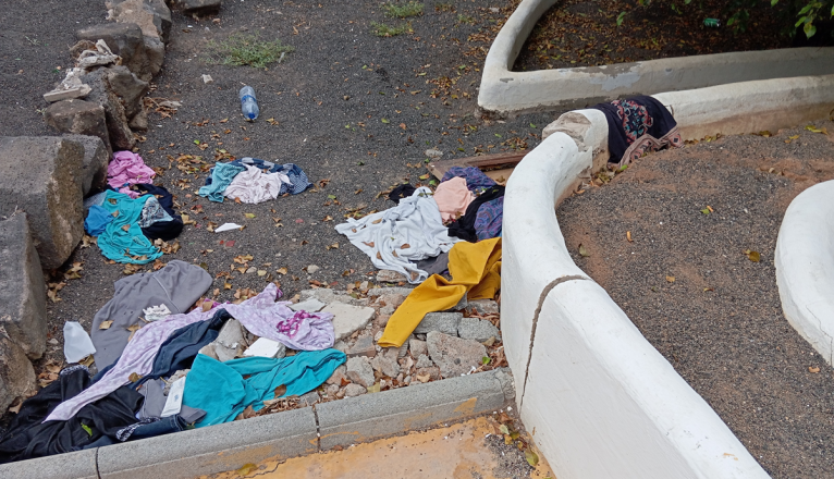 En las inmediaciones de este centro comercial se puede ver basura acumulada como diferentes prendas de ropa, lo que representa la "dejadez en las labores de limpieza" según firma el vecino.