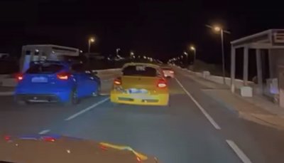 En el vídeo, publicado en redes sociales, se ve cómo los dos coches se colocan a la misma altura hasta que pisan el acelerador y comienza la carrera hasta el punto de adelantar a otro vehículo que circulaba por la carretera.